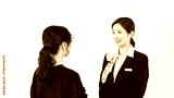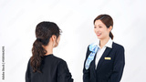 接客、女性、受付、店員、スタッフ、笑顔、ホテリエ、案内、お客様、来客、顧客、アドバイザー、ビューティ、BA、CA、キャビンアテンダント、デパート、百貨店、ショップ、エステ、サロン、スーツ、制服、人材、仕事、働く、ビジネス、ビジネスパーソン、ビジネスウーマン、キャリアウーマン、日本人、美人、ミドルエイジ、説明、会話、話す、サポート、応対、面談、白バック、切り抜き、コピースペース、上半身、営業、スカー