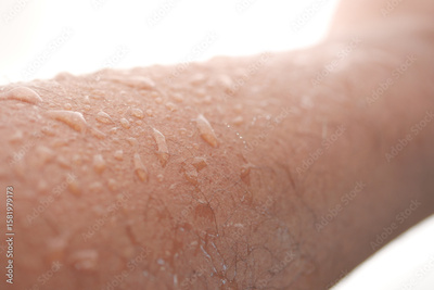 Close up of a wet arm shining in sunlight after swimming
