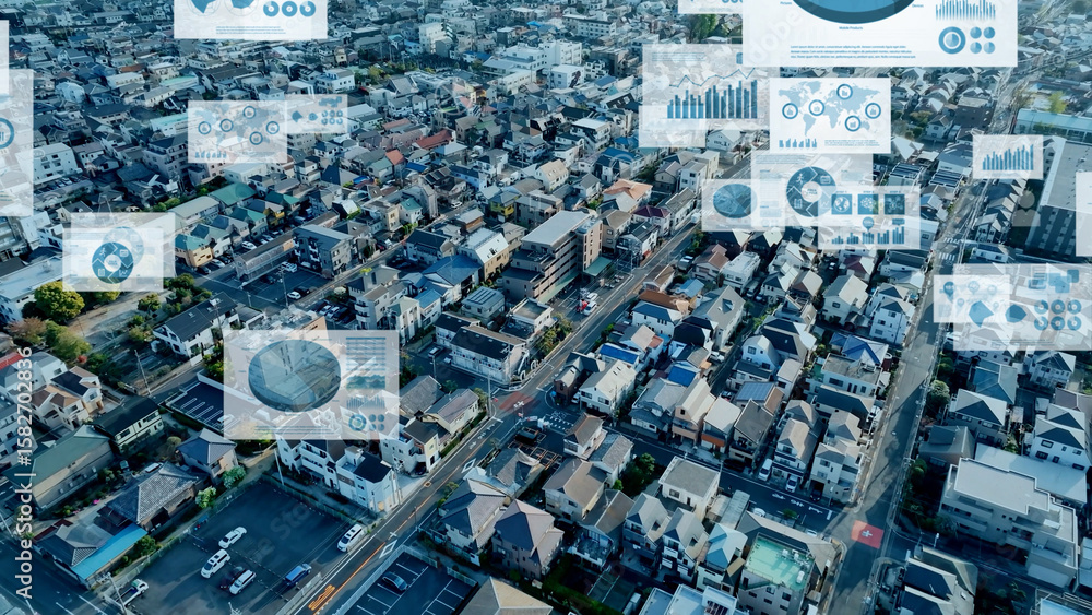 City and statistics graph concept