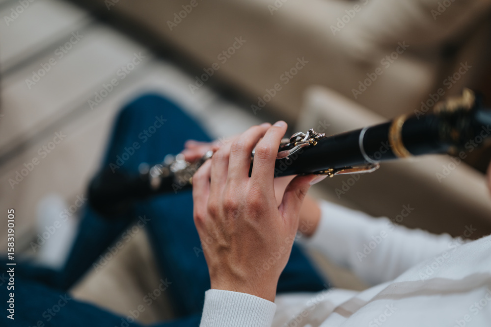 A close-up image of hands holding a clarinet, showcasing skill and dedication to music.