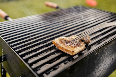 Delicious piece of meat on a grill.