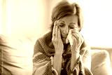 women with stress that suffer from allergies and close the nose with tissue paper. Because of having sneezing all the time