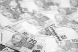 Brazilian reais banknotes. The current Brazil real money bills lies on table in big amount