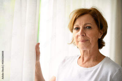 senior woman relax at home appartement close to window