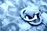 Swiss franc banknotes and cocaine pack with handcuffs. The current francs money bills and cuffs
