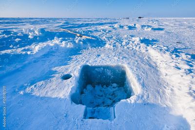 Camp Barneo at the north pole snow plain snow cube pattern snowflakes lines close-up