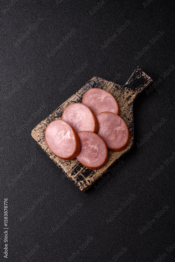 Sliced ham, meat, pork or turkey sausage for sandwiches. Ham slices, food