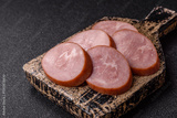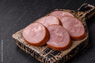 Sliced ham, meat, pork or turkey sausage for sandwiches. Ham slices, food