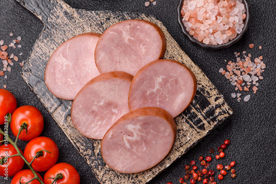 Sliced ham, meat, pork or turkey sausage for sandwiches. Ham slices, food