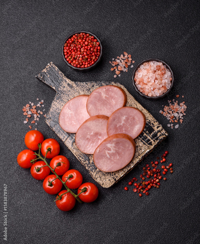Sliced ham, meat, pork or turkey sausage for sandwiches. Ham slices, food