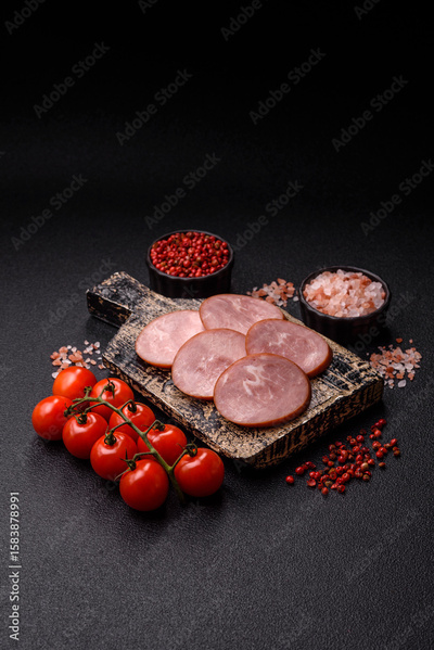 Sliced ham, meat, pork or turkey sausage for sandwiches. Ham slices, food