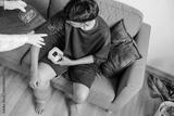 Medical Professional Checks Man's Blood Pressure, Who Has Swollen Leg