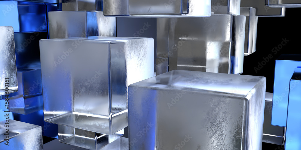 Transparent cubes pattern blue glass cube background geometric 3d crystals mockup