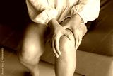 Woman with knee pain, he puts his hand on his knee, pain point from osteoarthritis and osteoarthritis, medical concept and treatment