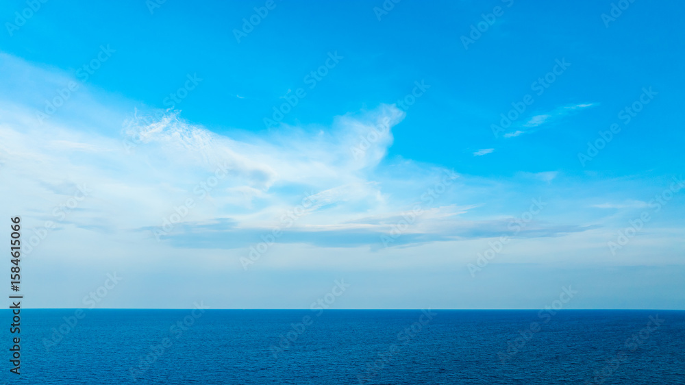 Nature of the ocean and blue sky Summer with sunshine, sandy beaches, clear blue waters sparkling against the blue sky. on an island with good ecology and environment Background for summer vacation