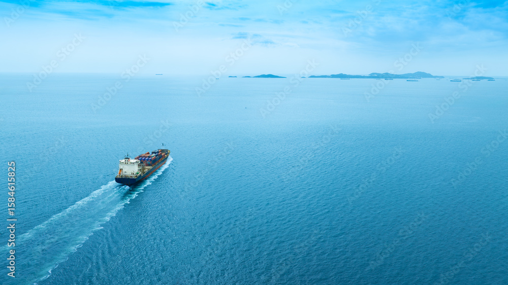 Aerial view of the freight shipping transport system cargo ship container. international transportation Export-import business, logistics, transportation industry concepts