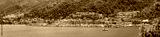 Panoramic view of colorful beach houses and a marina filled with yachts in Fethiye, Turkey