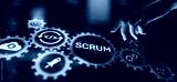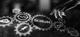 SCRUM, Agile development methodology, programming and application design technology concept on virtual screen.