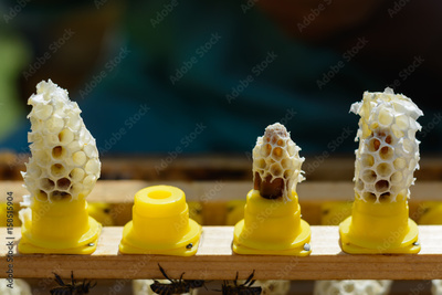 Wax cocoons of which have come out new queen beesKarl Jenter. Birth of Queen Bees. Apiculture.