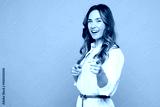 Young successful employee business woman corporate lawyer wears shirt classic formal clothes work in office point index finger camera on you isolated on pastel light blue background studio portrait.