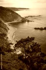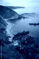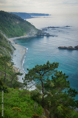 Beautiful beach in the north of Spain, nature of Asturias in warm summer day