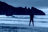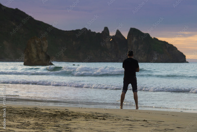 Beautiful beach in the north of Spain, nature of Asturias in warm summer evening during sunset