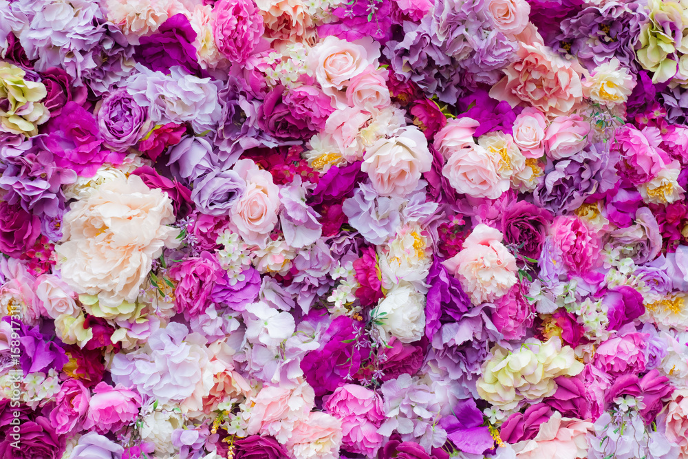 Beautiful flowers background for wedding scene, flowers made of fabric, artificial flowers