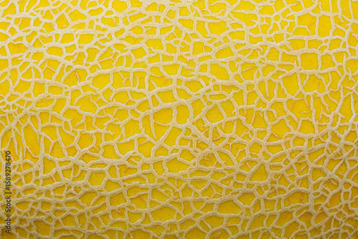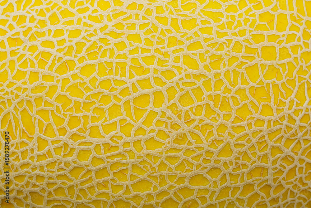 Macro close-up of yellow cantaloupe peel texture,A close-up shot showcases the intricate texture of a yellow melon skin.