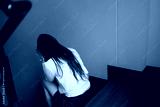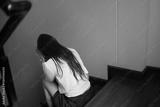 Depressed Asian woman sitting on stairs in house, Woman worry, Unhappy girl.