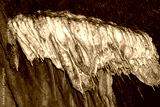 The stalactite. Stalagmite formation inside the cave. It has a glossy, moist appearance that highlights the mineral deposits.