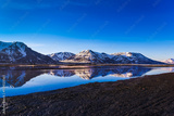 landscape of the Arctic Ocean and reflection with blue sky and winter mountains with snow , Norway, Spitsbergen, Longyearbyen, Svalbard