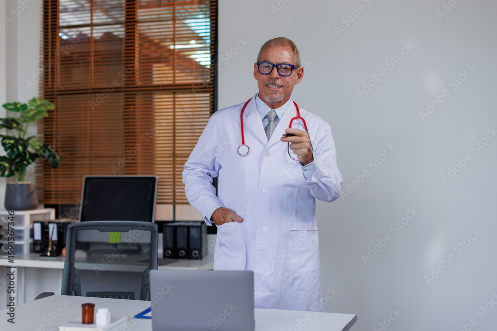 healthcare, Mala doctor character holds clipboard and standing in workplace.Professional consultation. Medical concept
