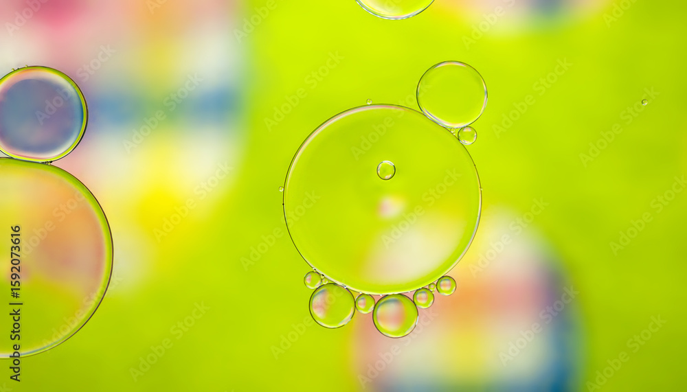 Oil bubbles. Close-up of oil bubbles on water. Abstract texture