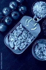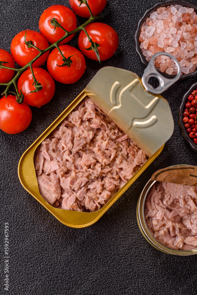 Tuna, canned fish in a can and on a plate for making sandwiches and other food. Canned tuna