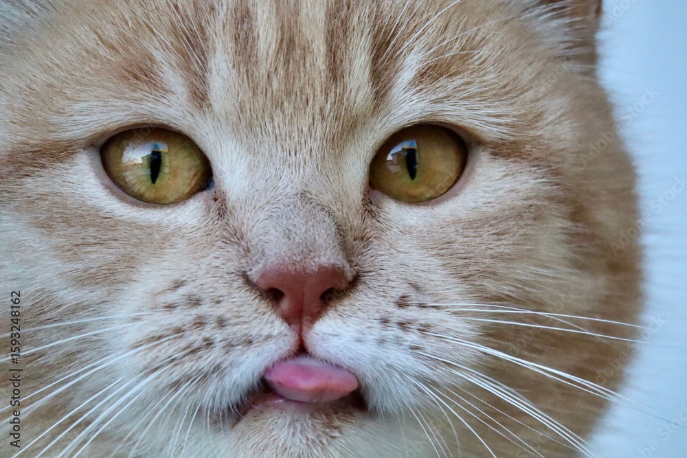 Close-up of a cute cat with its tongue out.