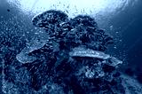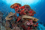 Colorful coral reef with school of glassfish surrounded in crystal clear water. Beautiful landscape underwater of Andaman sea at Similan National Park, Thailand.