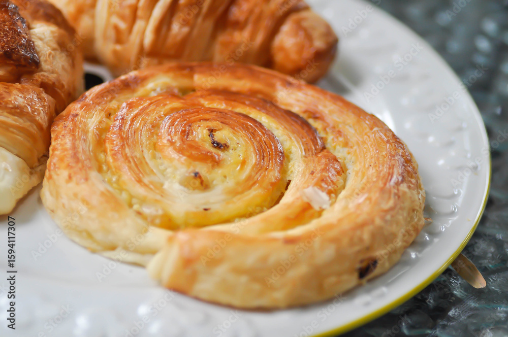 danish or danish pastry dish and croissant ,French croissant or French bread