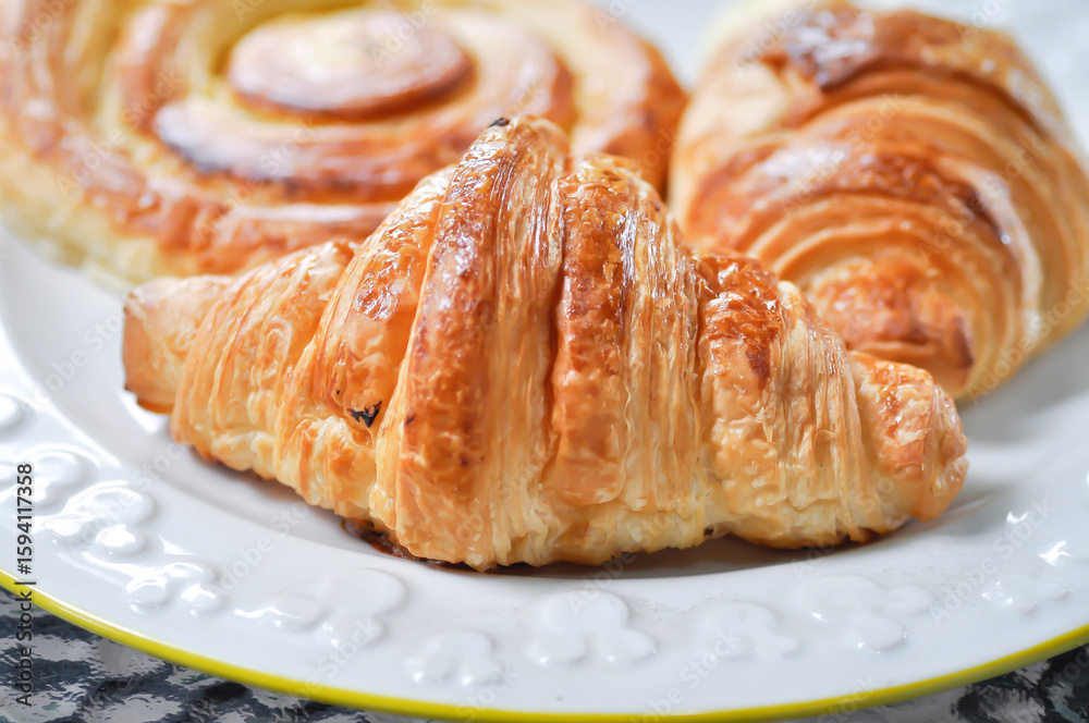croissant ,French croissant or chocolate croissant or French bread and danish or danish pastry
