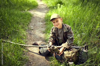 outdoor portrait of young child boy, tourism concept