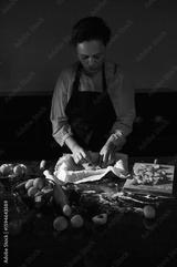 Woman Preparing Apricot Pastry in a Dim Kitchen Setting, Daytime
