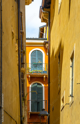 Charming narrow streets of Verona, Italy, with colorful historic buildings, sunny skies, and classic European urban atmosphere