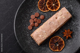Nougat or white caramel with hazelnuts and pistachios and citrus pieces. White nougat with nuts