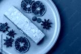 Nougat or white caramel with hazelnuts and pistachios and citrus pieces. White nougat with nuts
