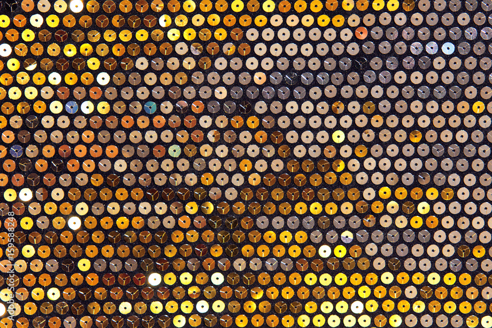 Fabric with sequins, turquoise and gold