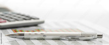 Kugelschreiber und Taschenrechner auf Zahlentabelle