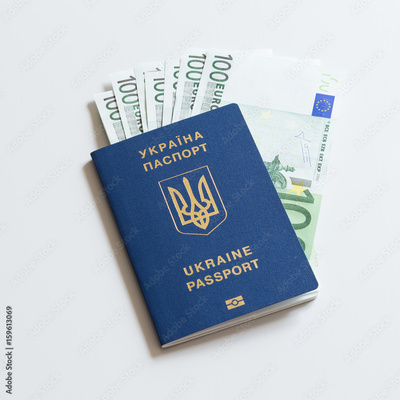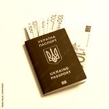 Ukrainian passport for travel abroad of euro banknotes. abolition of Schengen visas for Ukrainian - concept