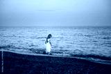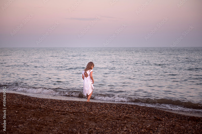 happy girl white dress on coast