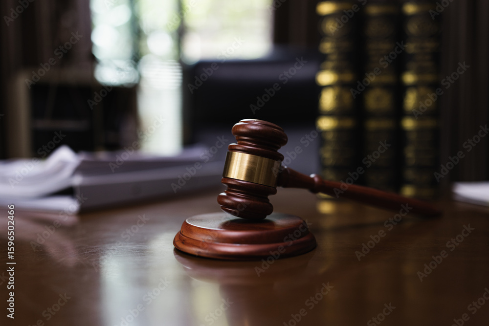 lawyer hammer on wood table, Judge's gavel, law,