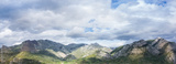 Panorama of beautiful mountain in Spain, Asturias region in summer, with dramatic sky and a lot of clouds