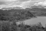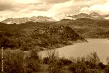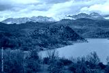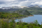 Beautiful mountain lake in Spain, Asturias region in summer, with dramatic sky and a lot of clouds